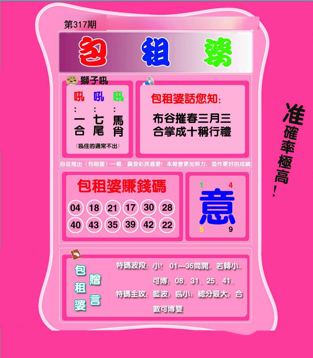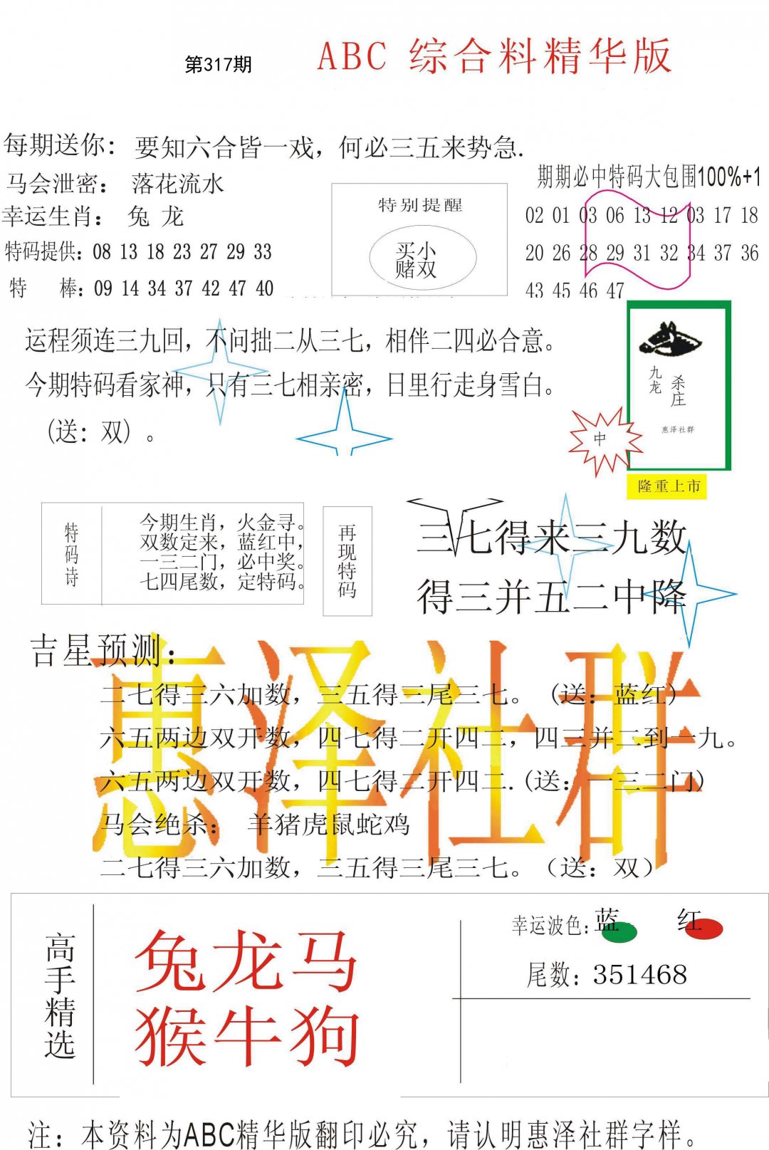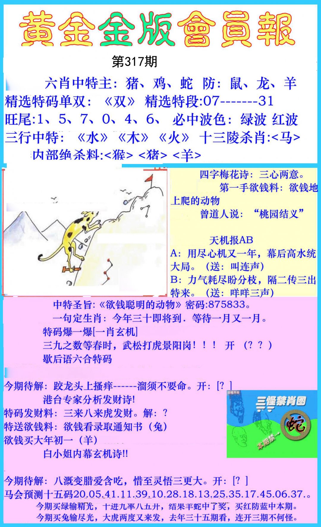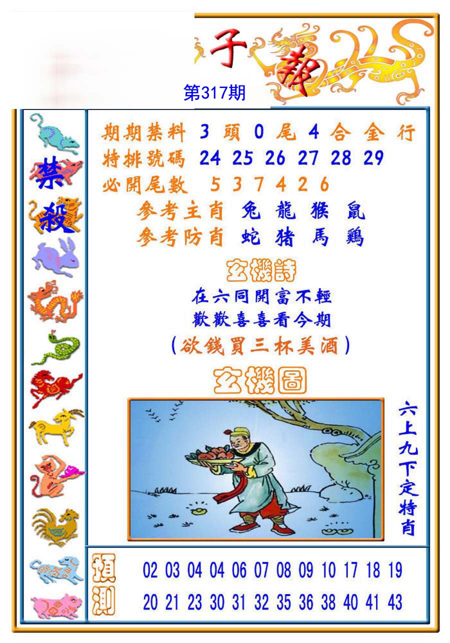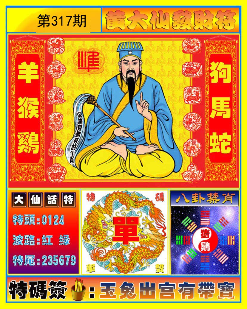 317期必中⑤肖: 龙蛇牛猴兔 |