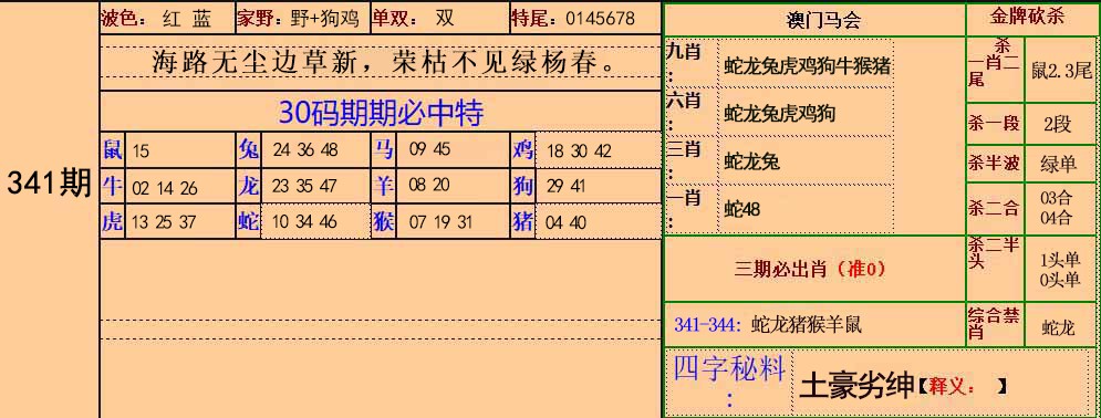 317期单双中特【家禽+猪羊兔牛】?00 |