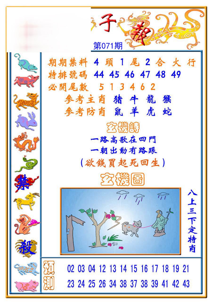 | 071期必中③肖: 马虎鼠 |