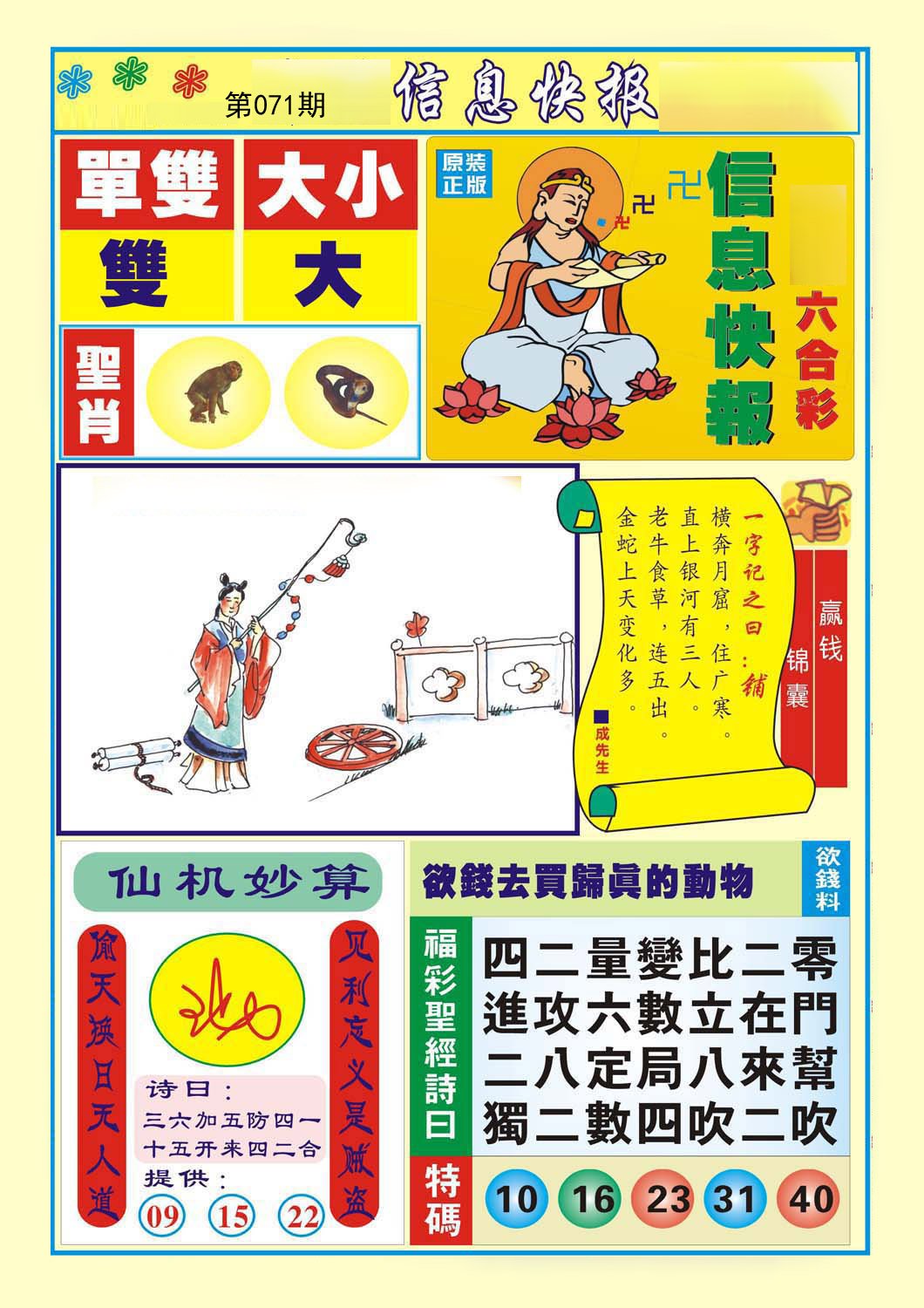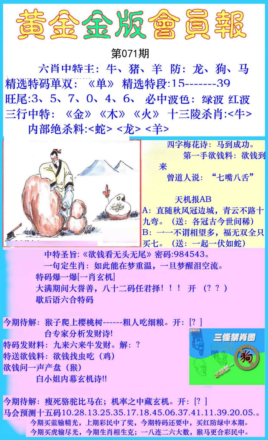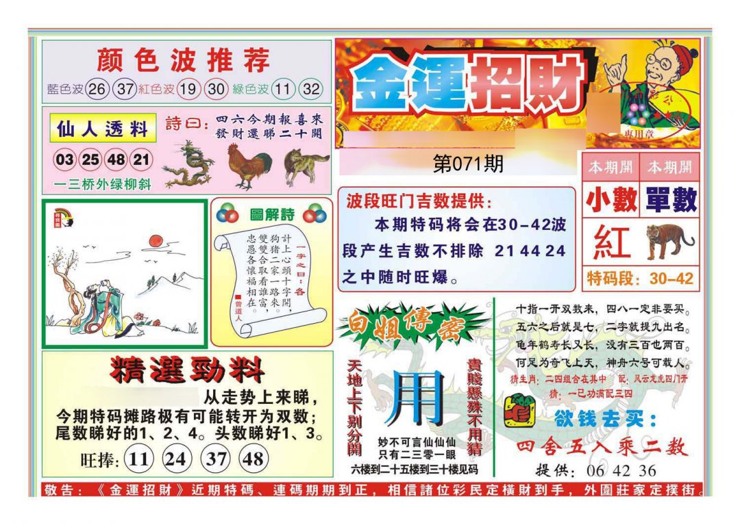 071期必中⑤肖: 马虎鼠兔牛 |