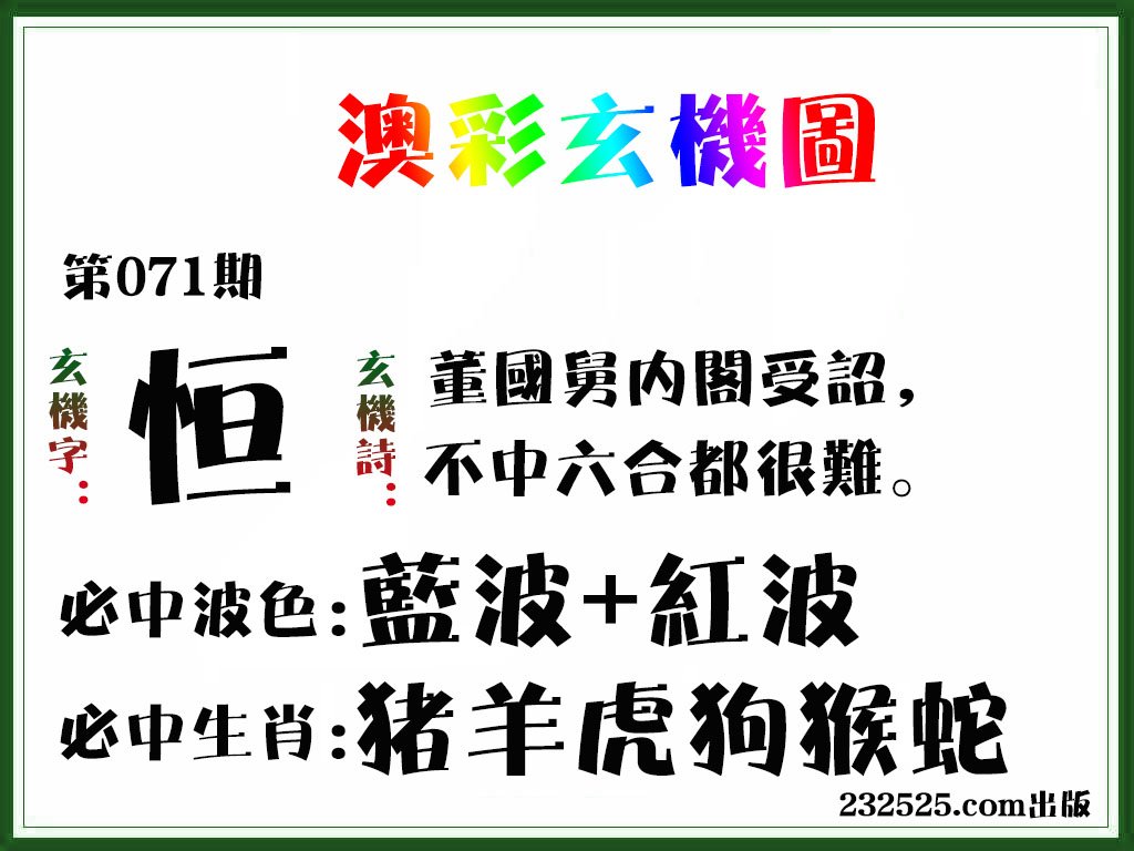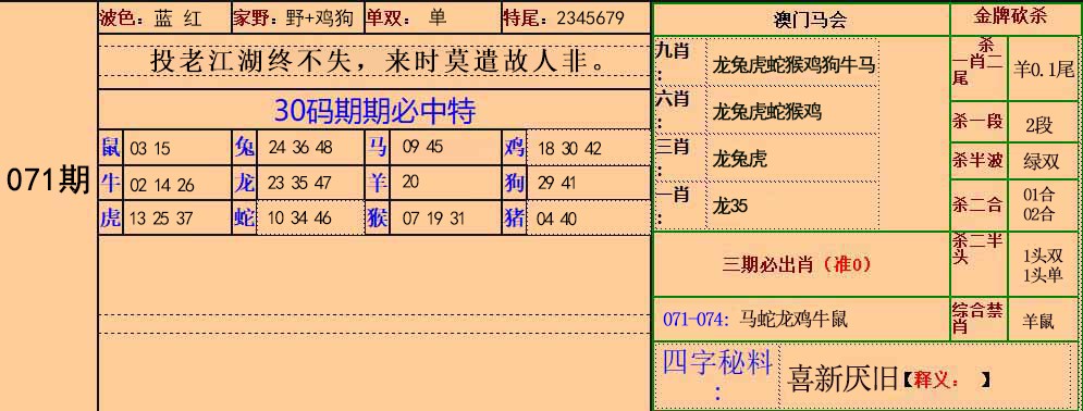 第069期绝杀半波【绿单】开猴23准 |
