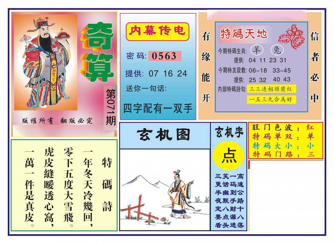 071期绝杀三肖【马狗兔】开?00 |