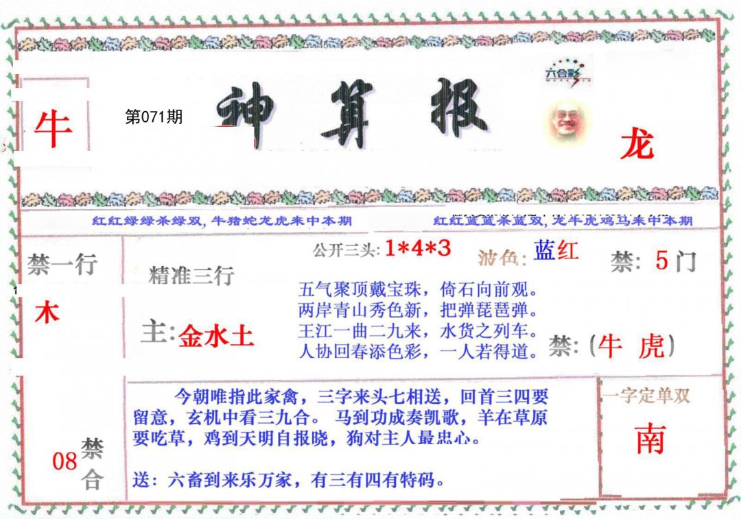 | 068期必中③肖: 牛龙羊 |